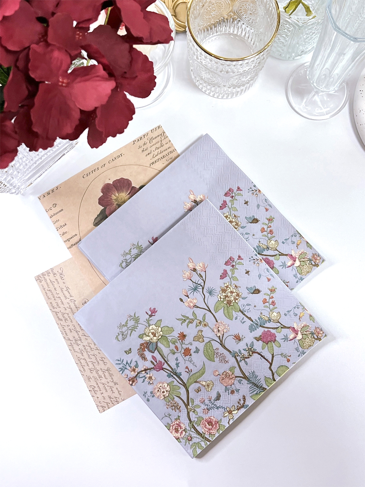 Estas servilletas de papel con estampado de flores silvestres vintage para decoupage combinarán con toda la vajilla de su fiesta, celebraciones y ocasiones especiales como bodas, cumpleaños, té en el jardín, picnics y fiestas florales de primavera, y también pueden usarse para decoupage.