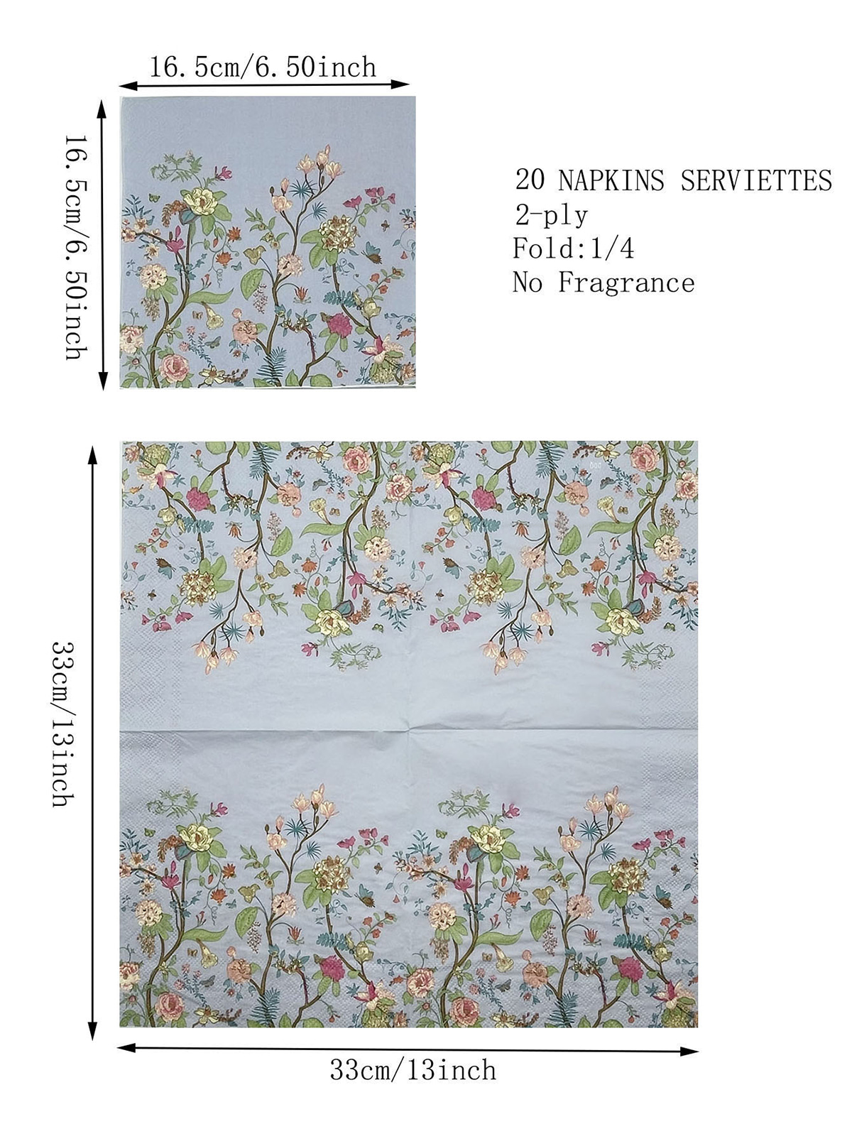 Esta servilleta de papel con estampado de flores silvestres vintage para decoupage está hecha de pulpa de madera virgen al 99,99%, es suave y muy absorbente, tiene una gran solidez del color y 2 capas de papel de alta calidad, será más conveniente para usted limpiar después de la fiesta.