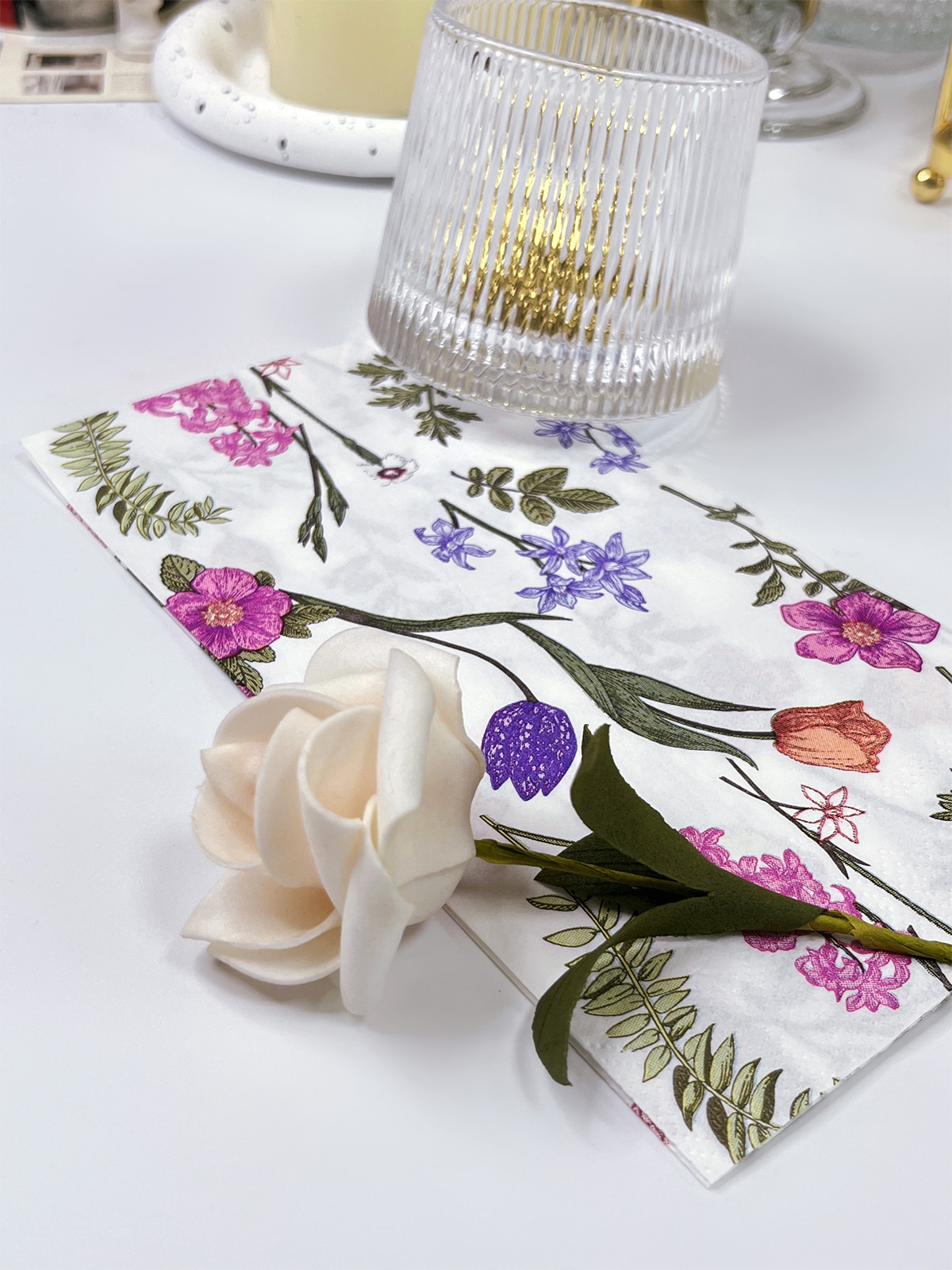 Estas servilletas y servilletas de papel floral de acuarela, toallas de papel para invitados de colores brillantes para la cena, la cocina y el baño están hechas de pulpa de madera virgen al 99,99%, suave y altamente absorbente, con una gran solidez del color y 2 capas de papel de alta calidad. Será más conveniente para usted limpiar después de la fiesta.