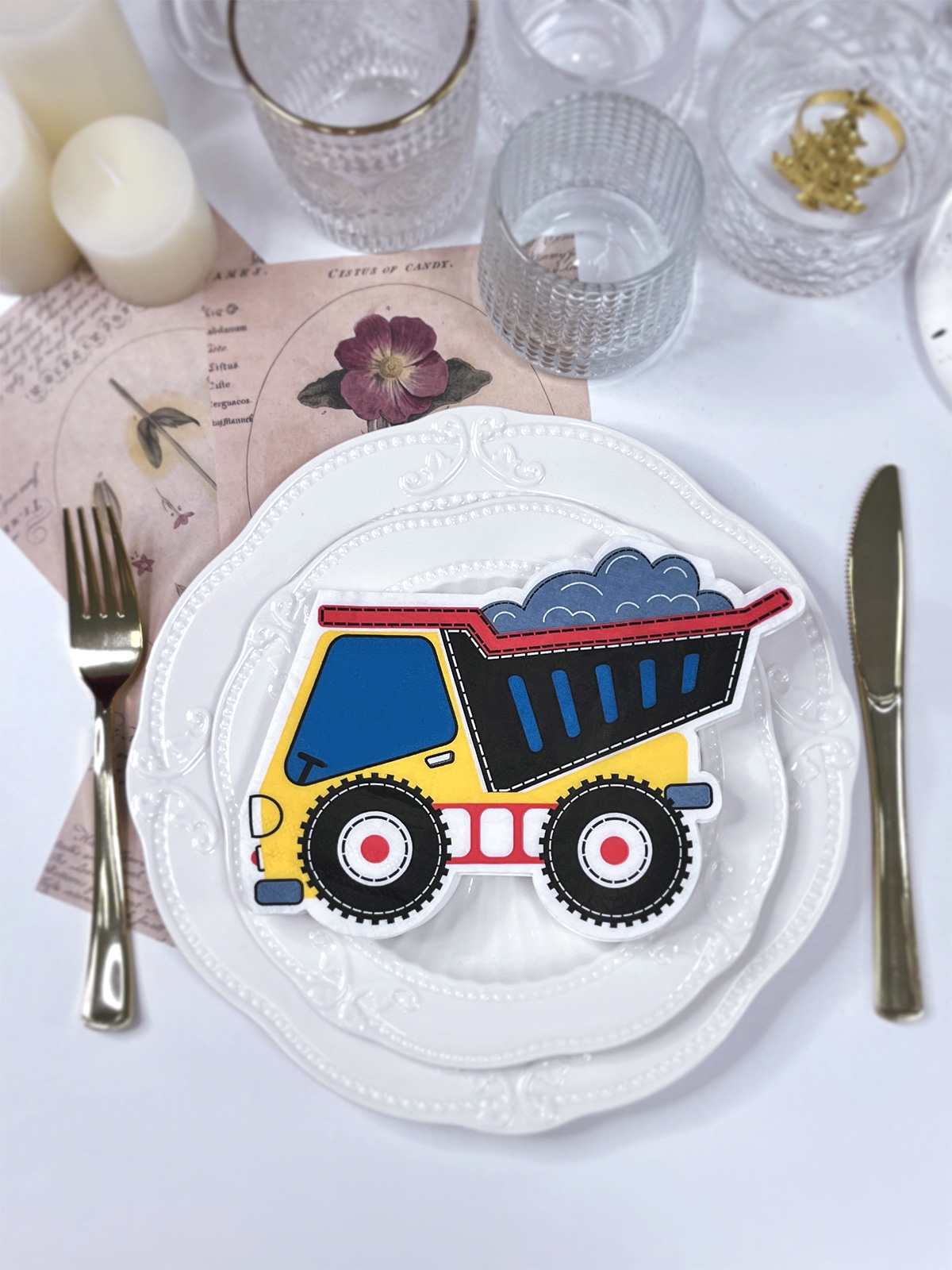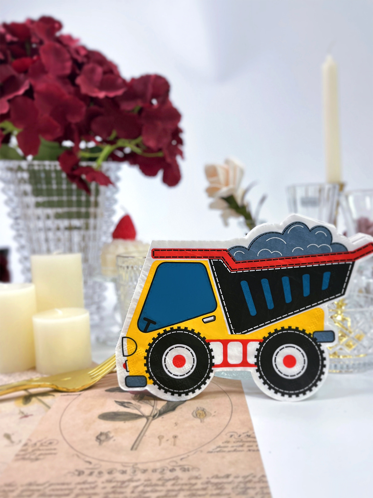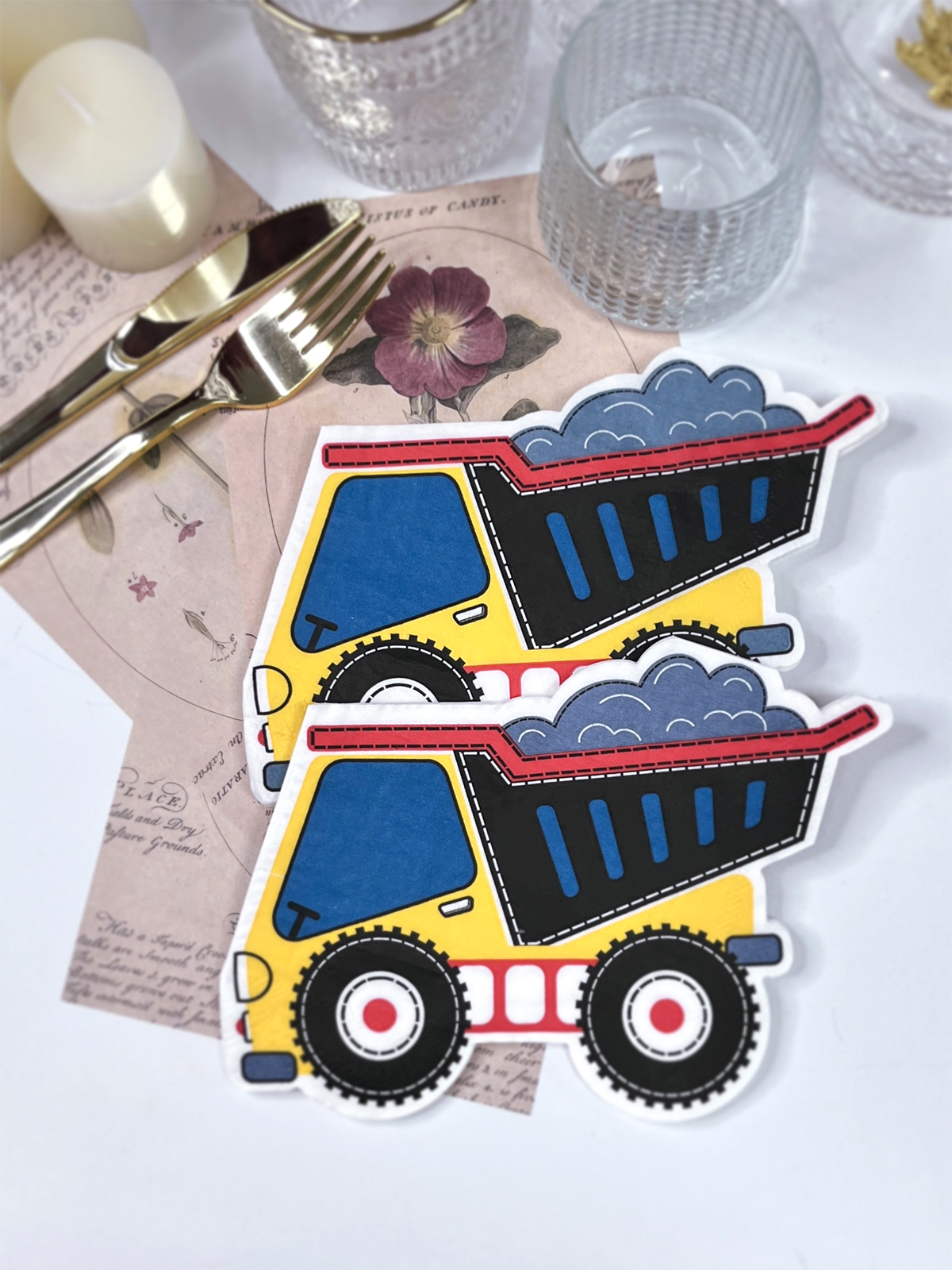 Estas servilletas de papel para cócteles con forma de camión son vibrantes y encantadoras, y añaden un toque encantador a las fiestas de cumpleaños y al uso diario. Son especialmente populares entre los niños, especialmente los varones. Además, pueden servir como acentos decorativos para restaurantes, cafeterías y tiendas de postres.
